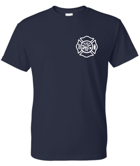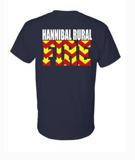 Navy blue tee with your personalized number and last name on the front and red and yellow chevron on the back.